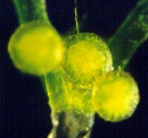 1998年2月20日、21日両日に生殖器を確認し、藻体が「イノカシラフラスコモ」であることが確定しました。