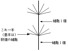 特に主軸なんて10cm位あるのに1細胞。すごい。というより無茶でしょ、、、。